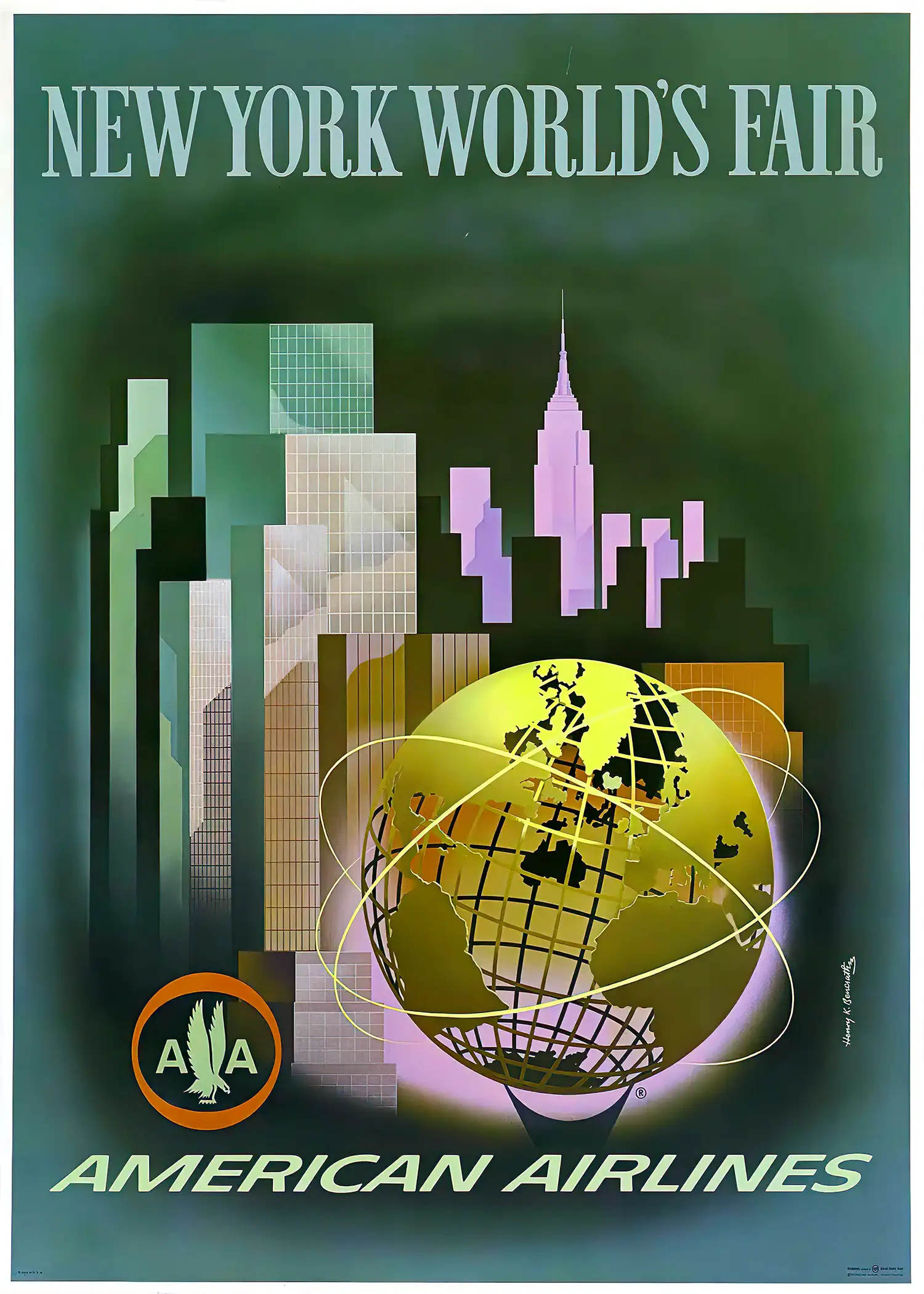 “Illustrated by Henry K. Bencrathy, this vintage travel poster promotes the American Airlines while advertising the 1964-1965 New York World’s Fair.”