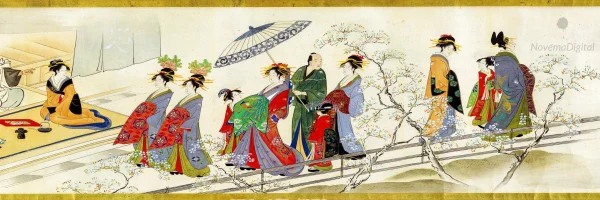 Chōbunsai Eishi – Three Gods of Good Fortune Visit the Yoshiwara; or “Scenes of Pleasure at the Height of Spring” (1800s)