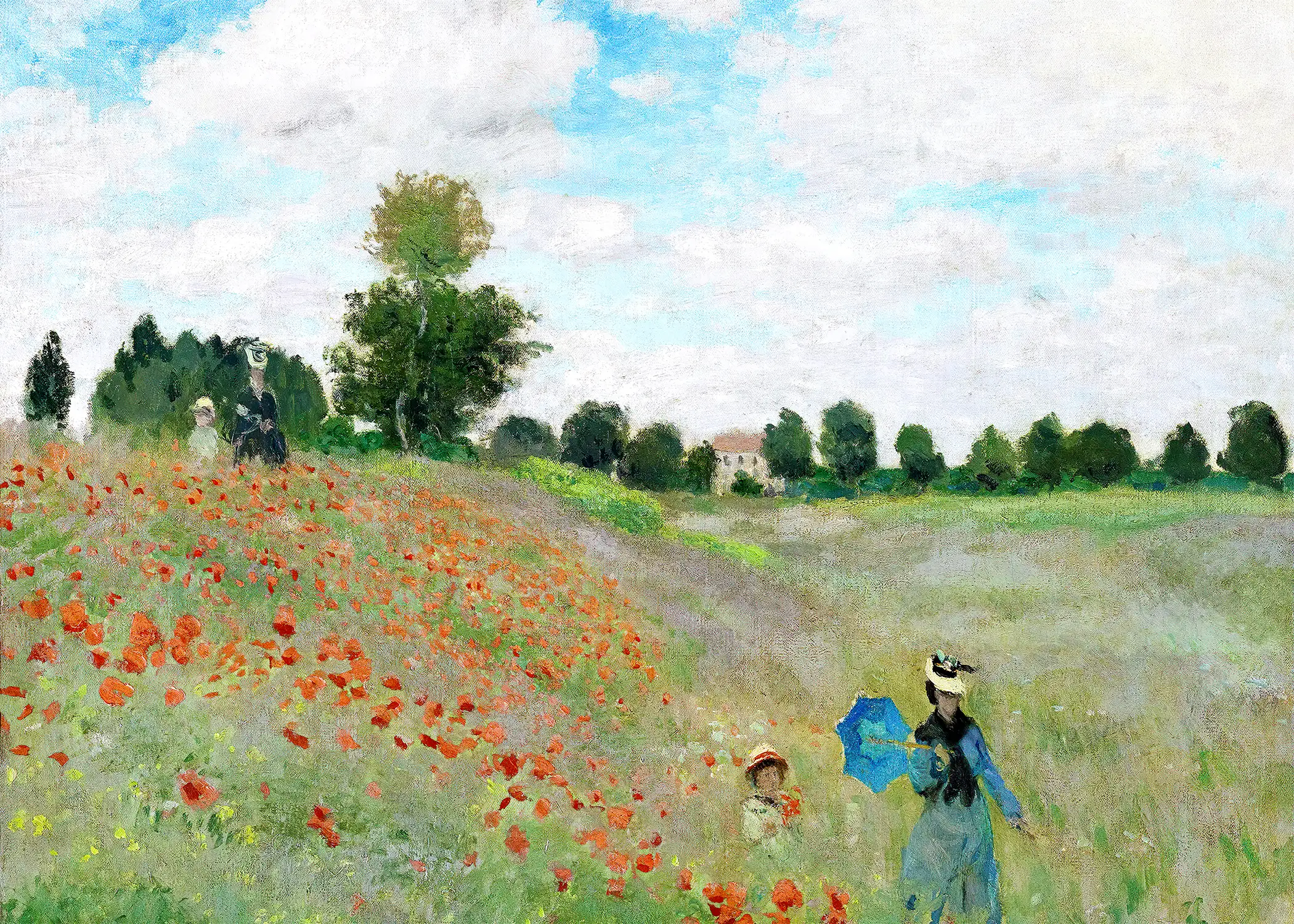Monet diluted the contours and constructed a colourful rhythm with blobs of paint starting from a sprinkling of poppies; the disproportionately large patches in the foreground indicate the primacy he put on visual impression. A step towards abstraction had been taken.