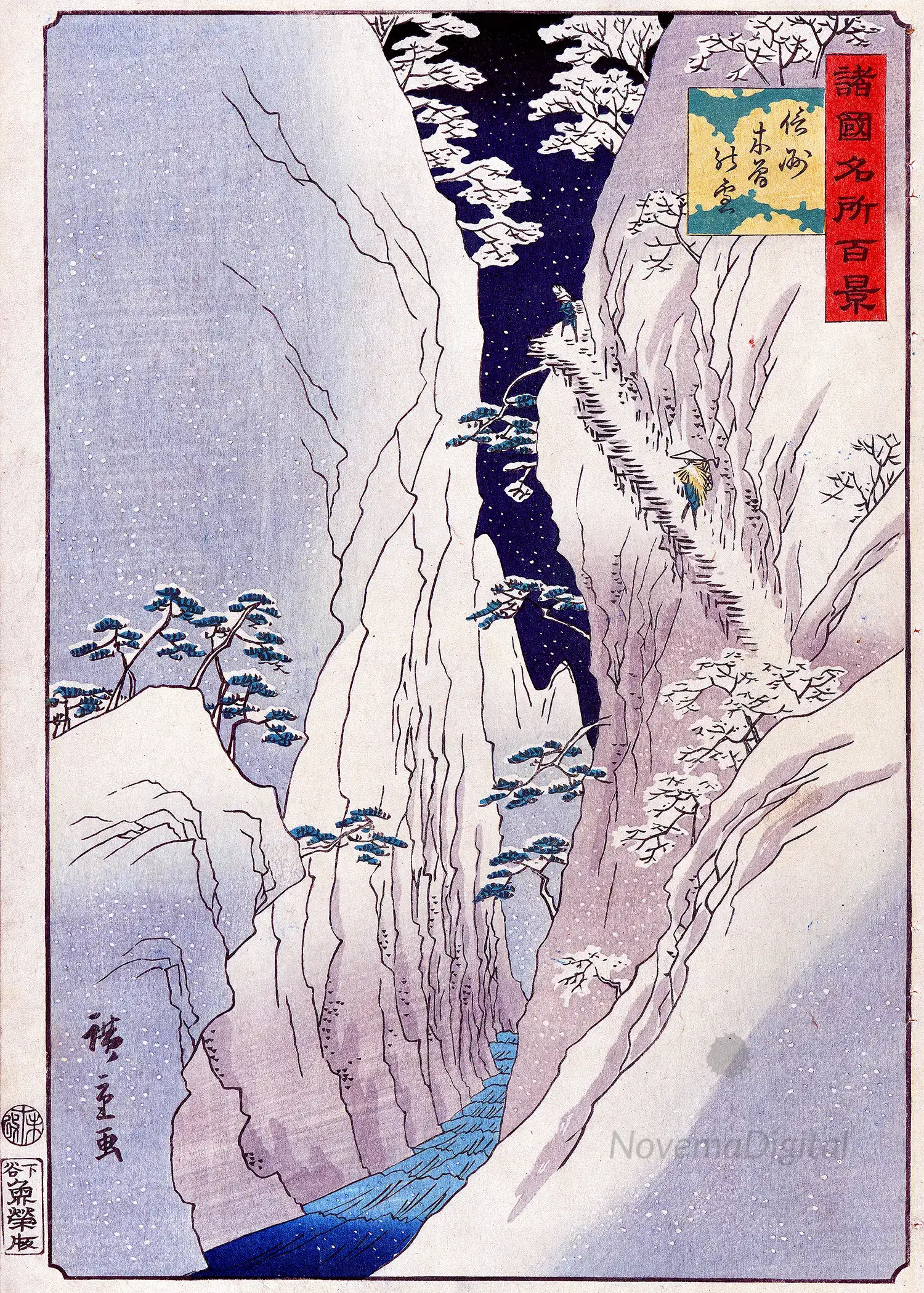Hiroshige II – The Kiso Gorge in Snow, Shinano Province (1859)