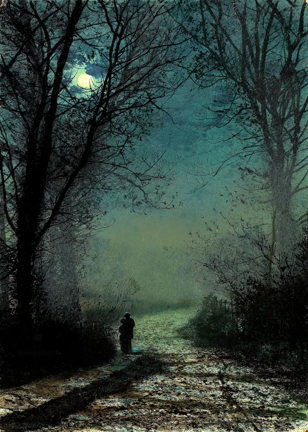 John Atkinson Grimshaw – Lovers on a Moonlit Lane (1873)
