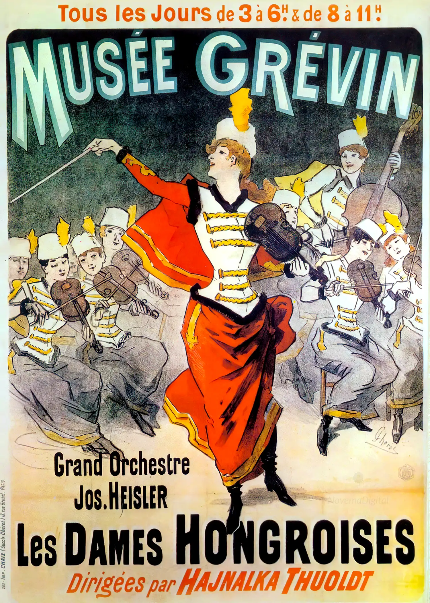 “Promotional poster for the Musee Grevin’s Grand Orchestre featuring Jos Heisler and The Hungarian Ladies drawn by artist Jules Cheret.”