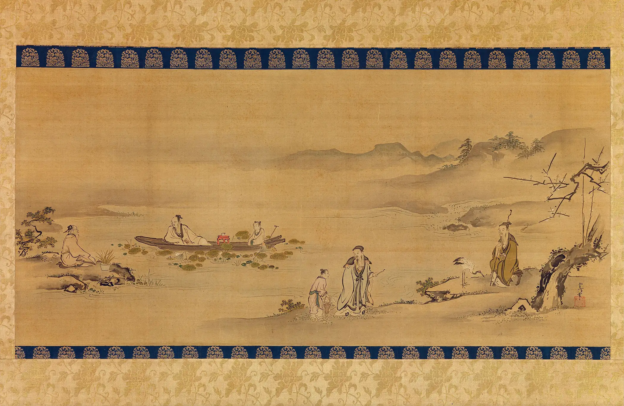 “One of the many pictorial subjects of Chinese origin adopted by the Kano school of painters, images of the Four Admirers portray beloved Chinese literary figures with the flower, and by extension the season, that each admired most. In this painting by Tsunenobu, a second-generation head of the Kano school’s Kobikichō branch in Edo (now Tokyo), the four literary heroes appear within a single pictorial space replete with seasonal, historical, and literary allusions.