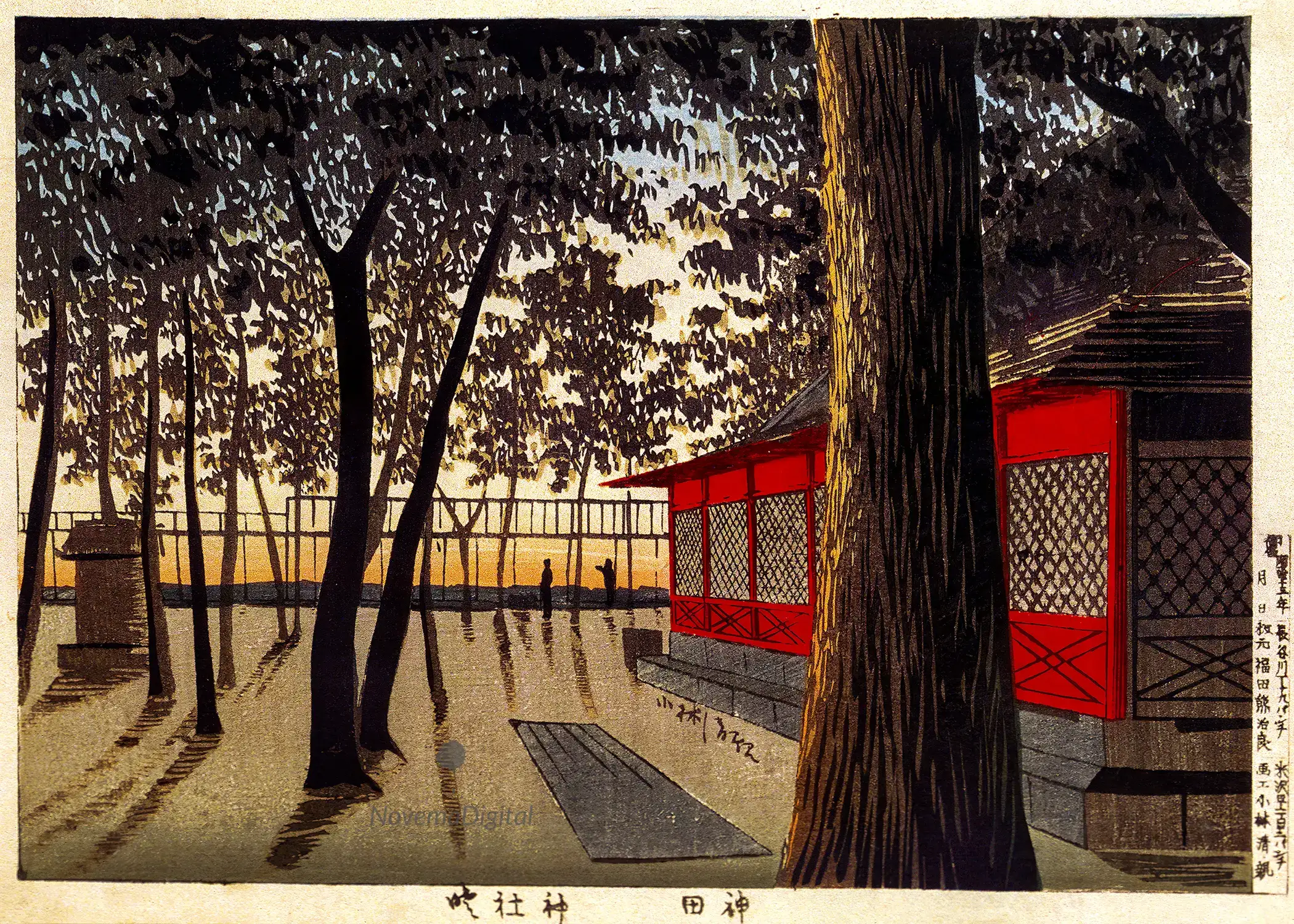 Kobayashi Kiyochika – Daybreak at Shrine, Kanda (1880)