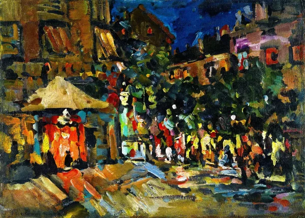 “In 1923 Korovin moved to Paris on the advice of Commissar of Education Anatoly Lunacharsky to cure his heart condition and help his handicapped son. There was supposed to be a large exhibition of Korovin’s works, but the works were stolen and Korovin was left penniless. For years, he produced the numerous Russian Winters and Paris Boulevards just to make ends meet.