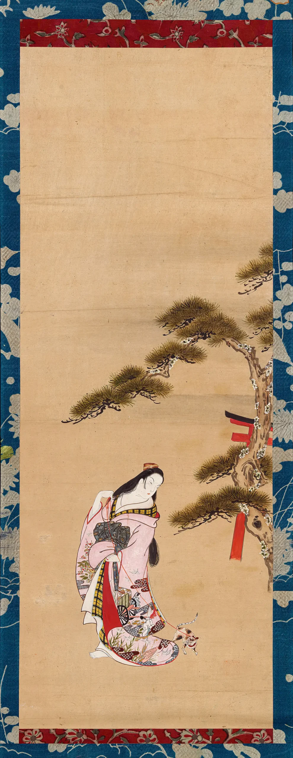 In this scene, a cat belonging to the Third Princess, also known as Onna Sannomiya, escapes onto the veranda, causing a blind to be pulled open, and revealing her to Kashiwagi. This fleeting glimpse sparks Kashiwagi’s infatuation and sets the stage for later events.