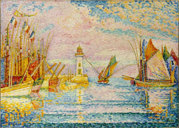 “Signac, an avid yachtsman, is best known for his vivid views of French ports and incandescent seascapes. This painting of 1925 depicts one of the two lighthouses marking the harbor of Port-Tudy on the Île-de-Groix, a small island off the coast of Brittany in northern France.