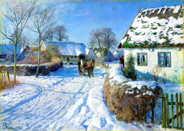 Peder Mørk Mønsted – A Village in the Snow (1929)