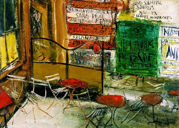 Saeki Yūzō – Café Terrace with Posters (1927)