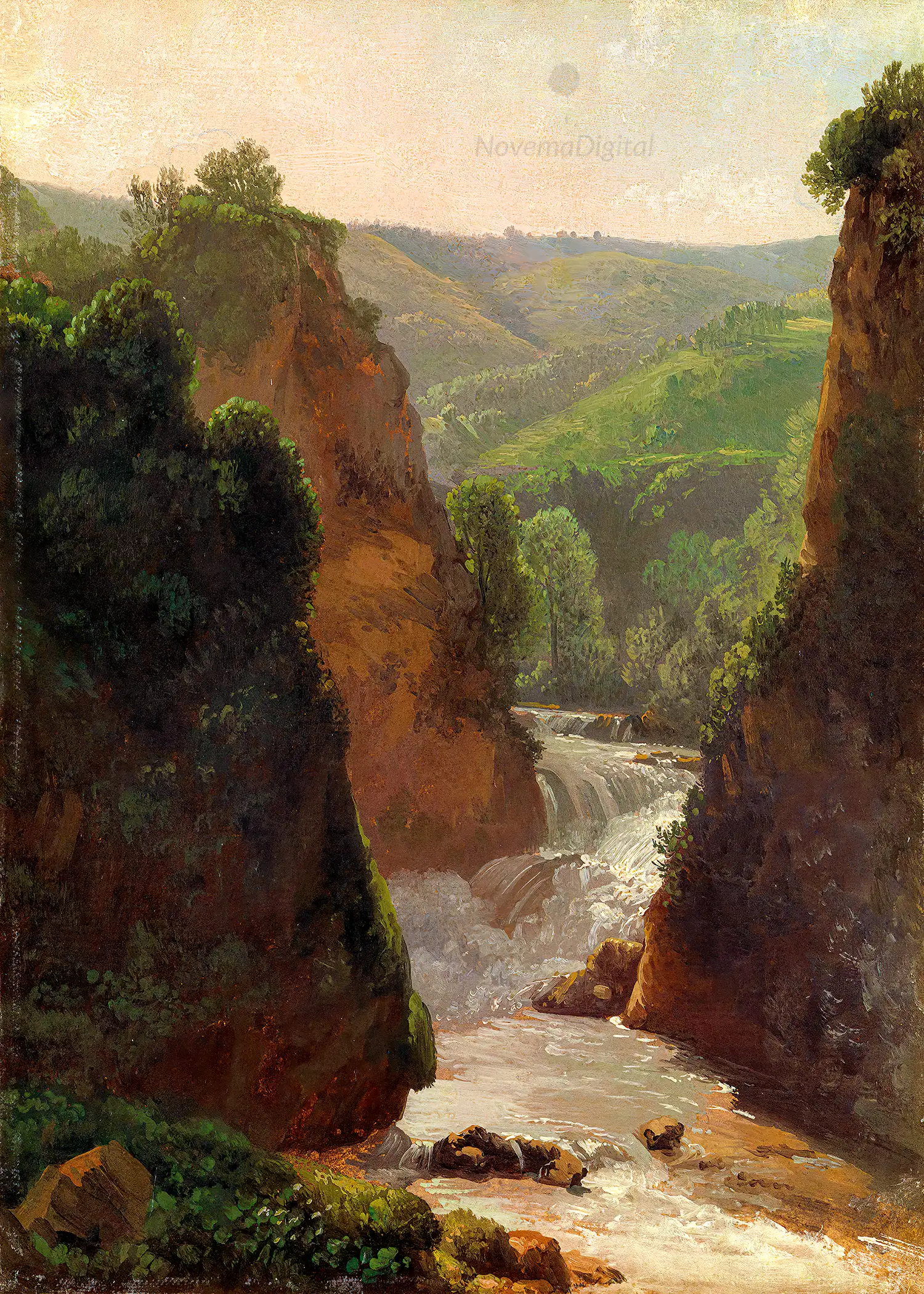 “A visit to the cataracts of the Aniene River, which courses through and surrounds Tivoli, was considered a highlight of the Grand Tour. Denis, a fixture of the expatriate community in Rome, went there on at least three occasions. He adopted the viewpoint seen in this plein-air sketch for a number of studio paintings, including one that commemorates a 1789 excursion undertaken with the artist Élisabeth Louise Vigée LeBrun (private collection).”