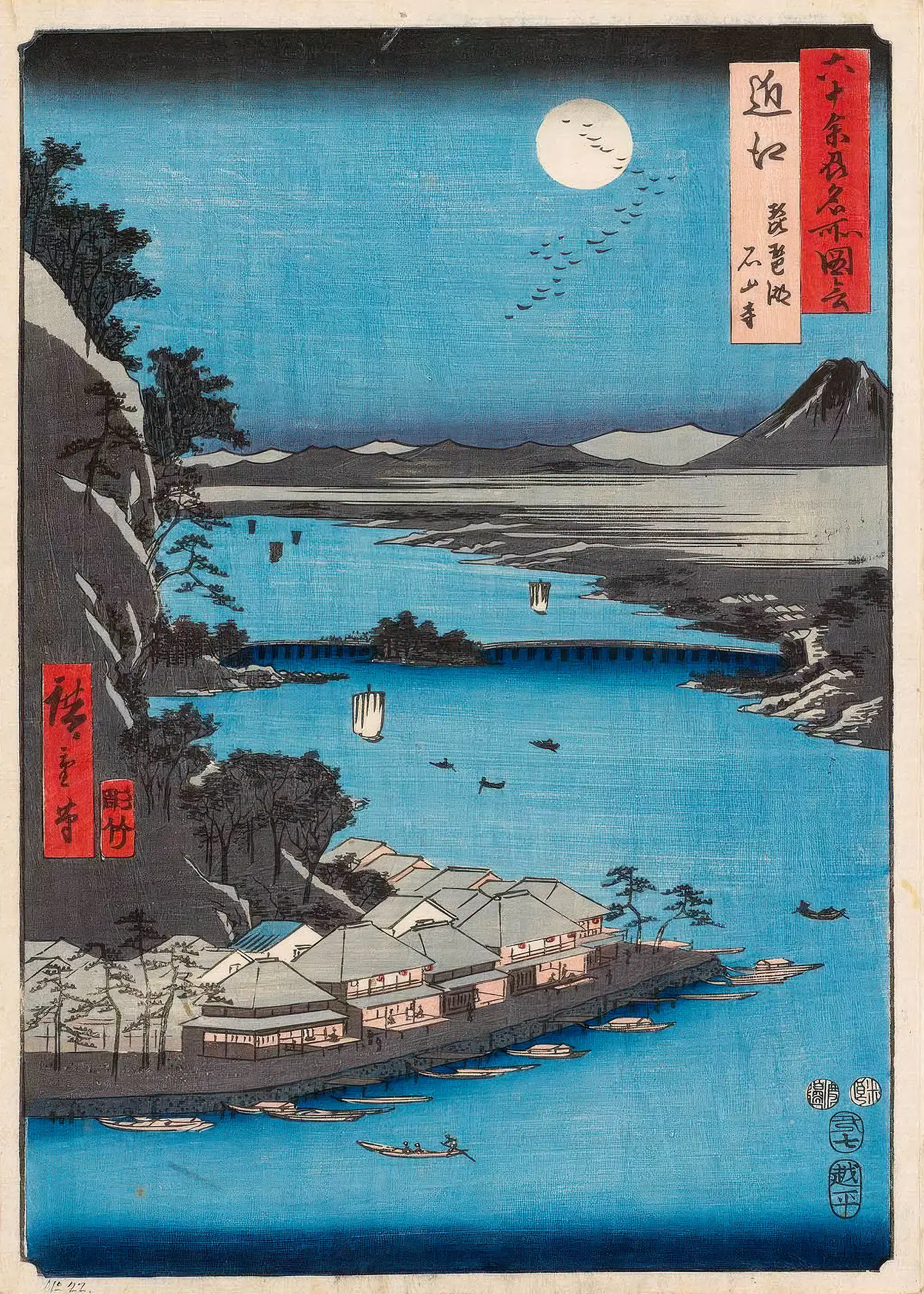 Utagawa Hiroshige – Ōmi Province, Lake Biwa, Ishiyama Temple (1853)