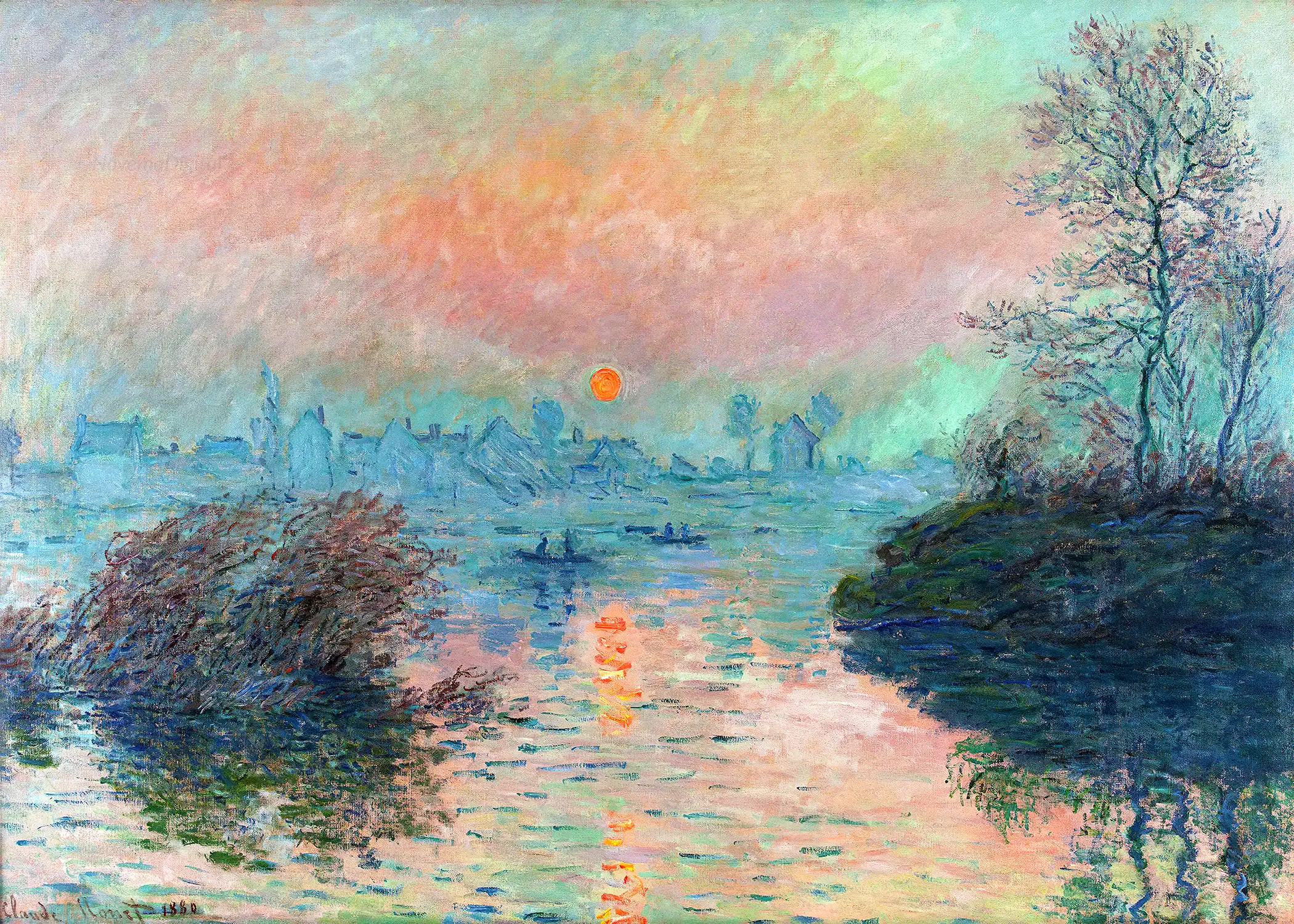 This artwork is a testament to Monet’s impressionist style—blending colors and light to encapsulate a fleeting moment. Created in 1871, it offers an intimate look at the Thames River and nearby architecture through Monet’s eyes.